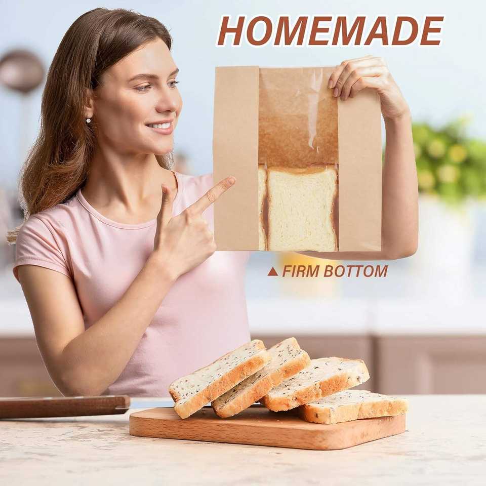 Handmade Embossed Resealable Baking Bags for Breakfast Lunch Kraft Paper Stand Zipper Top Baked Food Storage 35x21x9cm Window