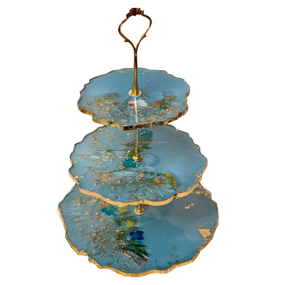 Resin 3 Tier Cake Stand Handmade Agate Cake Stand Centerpiece with Gold Rim for Parties and Get Together Custom Price