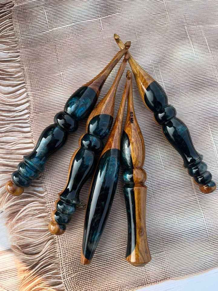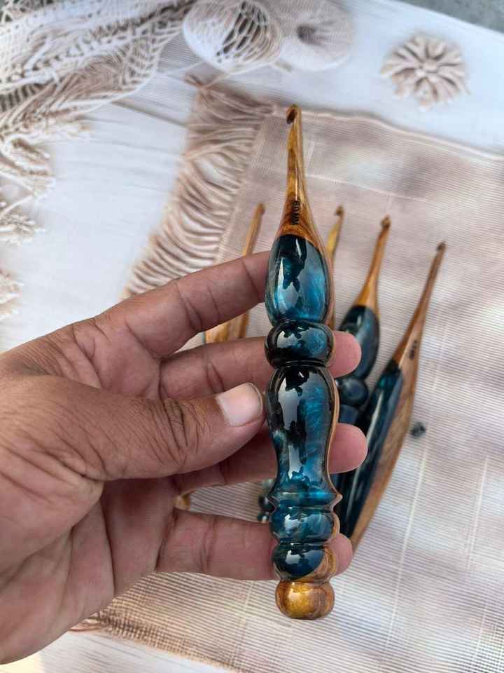 Resin And Wooden Crochet Hooks Lightweight Durable Smooth Finish Comfortable Grip Ideal For Knitting And Crochet Projects