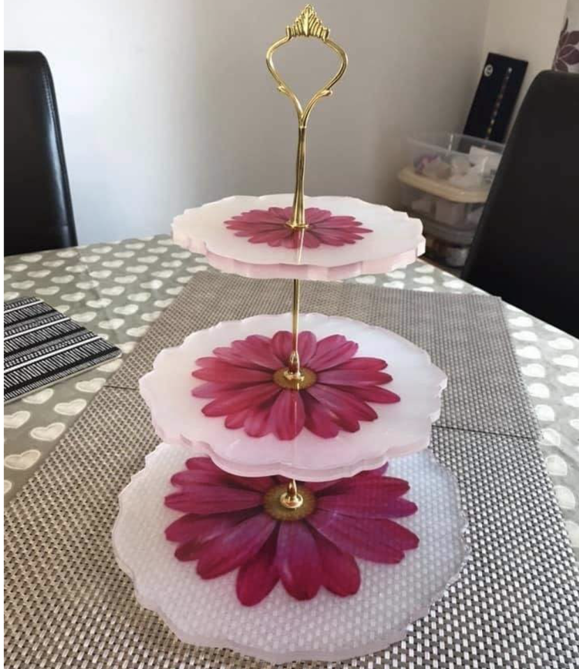 Resin Art Cake Stand with Coaster Set Round Silicone Mold for Baking & Decoration Use Resin Epoxy