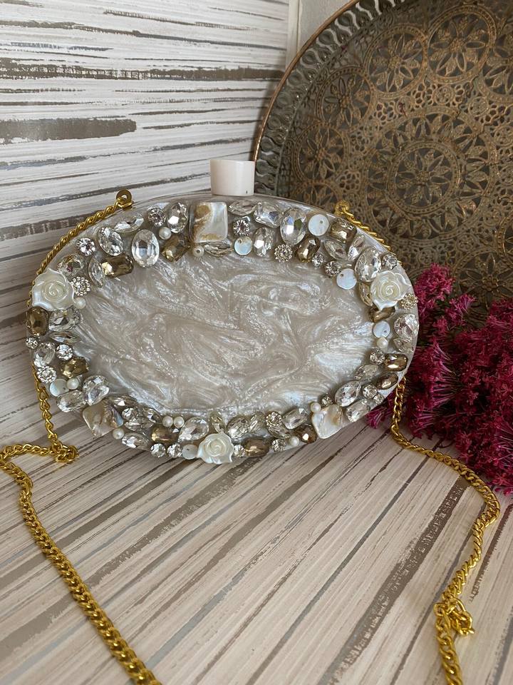Resin Bag Clutch Fashionable for Girls Wedding Gift Party with Waterproof Silk Lining and Rivet Decoration