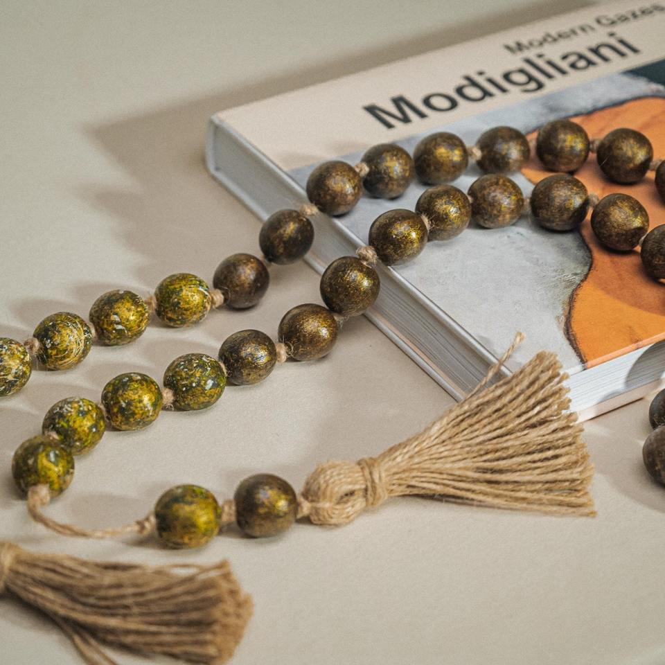 Premium Resin Wood Garland for Home Decor Trending Tabletop Displays with Bead Garland for Living Room for Home Decor