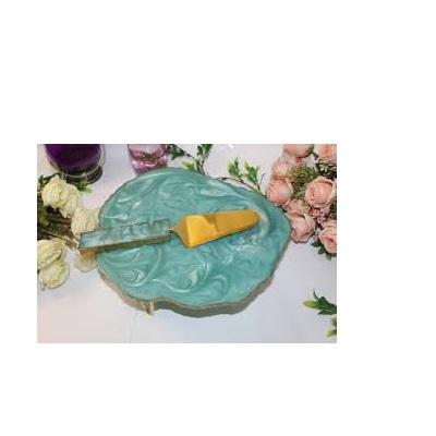 Resin Cake Stand with Metal Stand Knife and Golden Brown Color Cake Stand for Decorate Party and Home