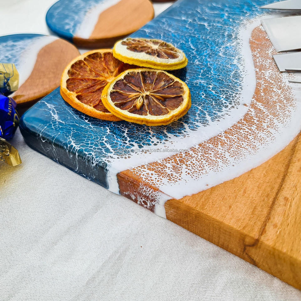 Resin Cheese Board Handmade Wood Cutting Board Made From Resin Epoxy Chopping Board Kitchen with Handle