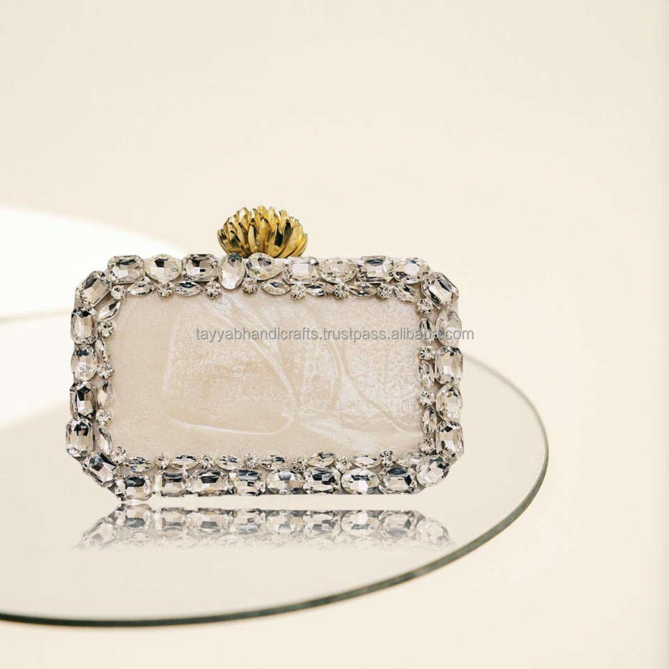 Elegant Resin Clutch Bags and Ladies Purse Eco-Friendly Blue White Color Sculpted Design Wedding Gift From India