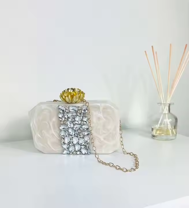Resin Clutch Bridal Purse With Lotus Flower Knob Women Wedding Clutch Bride Designer Handbag by crescent crafts