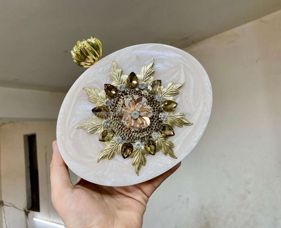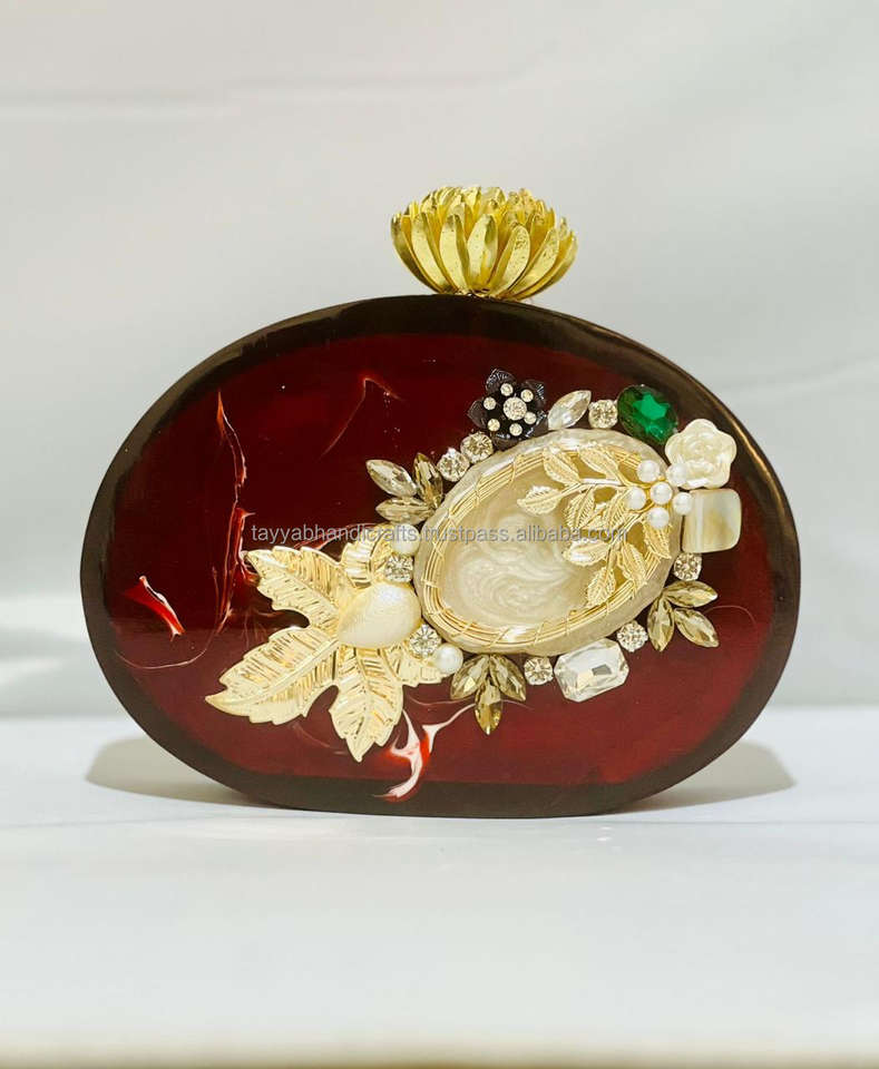 Resin Clutch Purse with Detachable Wrist Strap Modern Design Angel Pattern Handbag Stylish from India