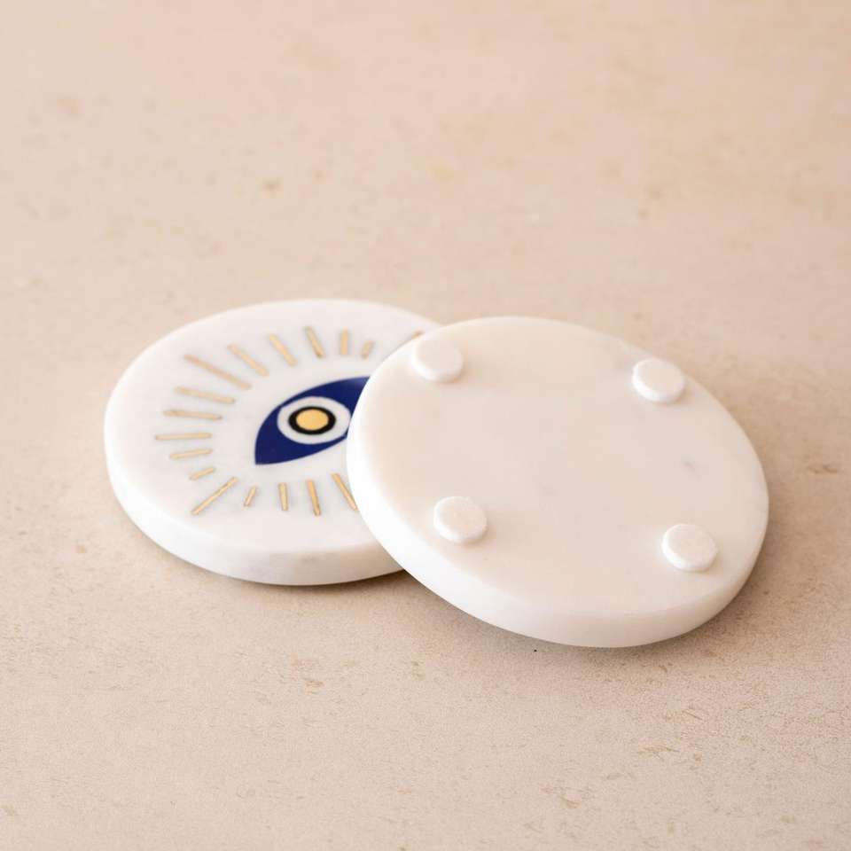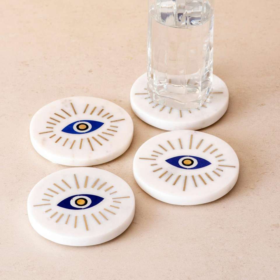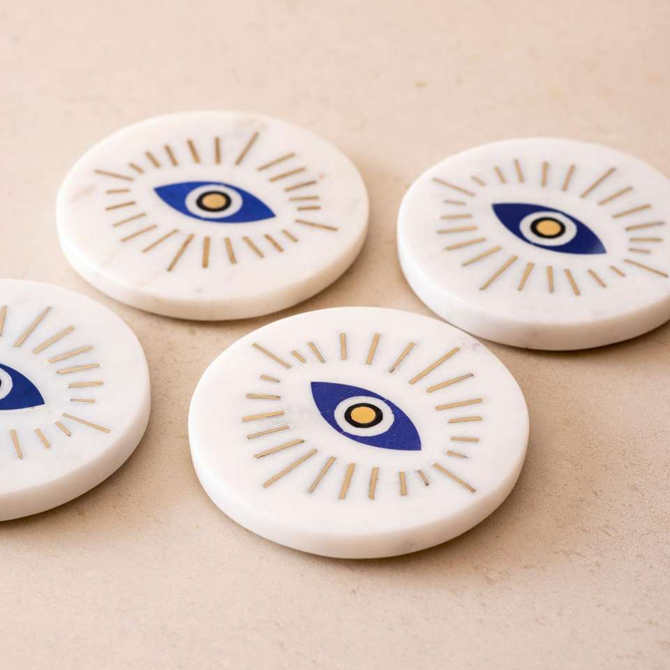 Resin Coaster Set with evil eye Gold Leaf Design for Living Room Dining Bar Wholesale Home Decor Drinkware Suppliers India