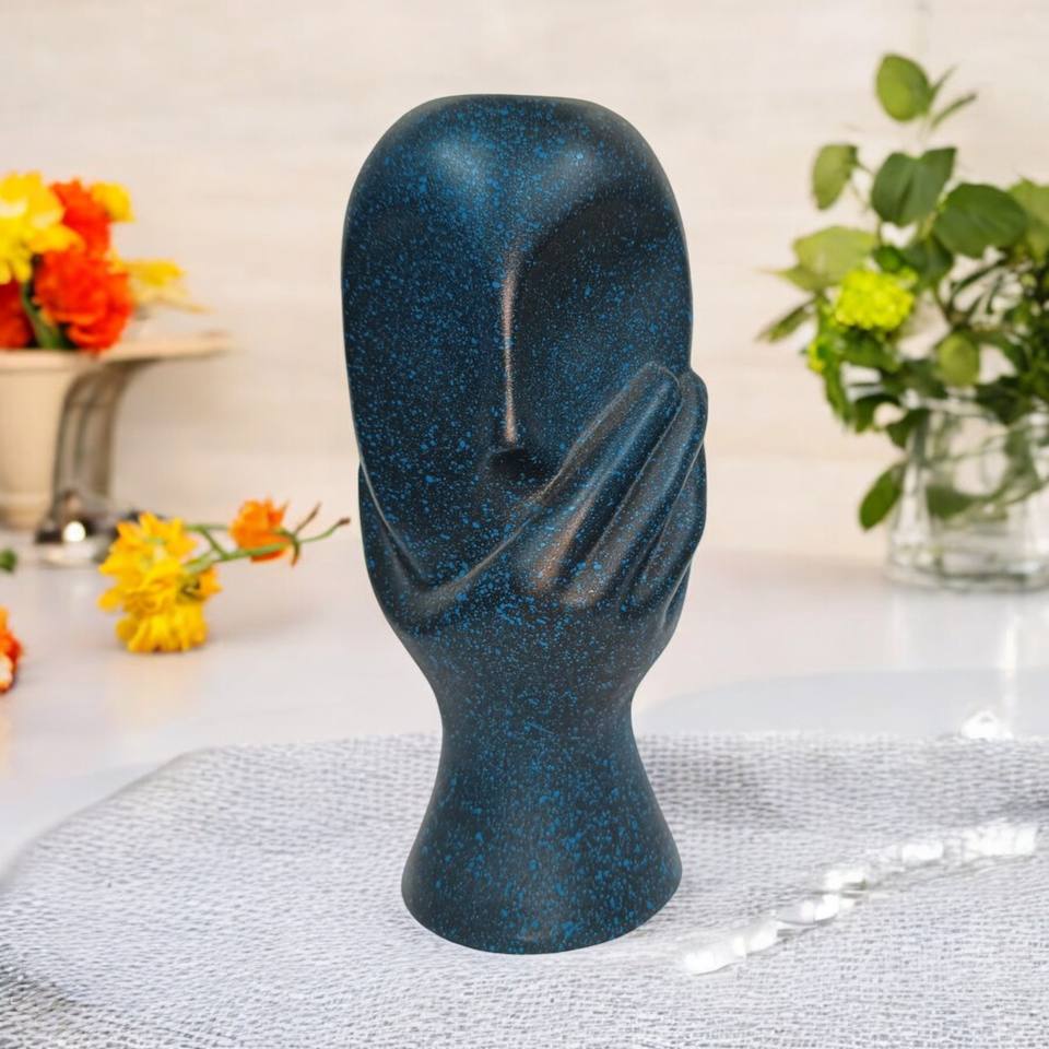 Minimalist Glazed Polyresin Flower Pot with Hand on Face Design for Home & Office Decor & Gardening for Artificial Flowers