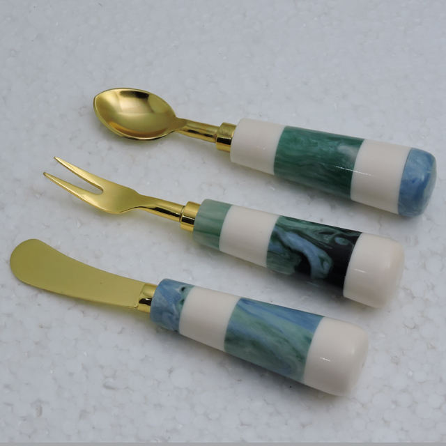 Resin & Golden Plated Stainless Steel Cutlery Spoon Fork & Knife Set of 3 Pcs Hot Sale Flatware Set