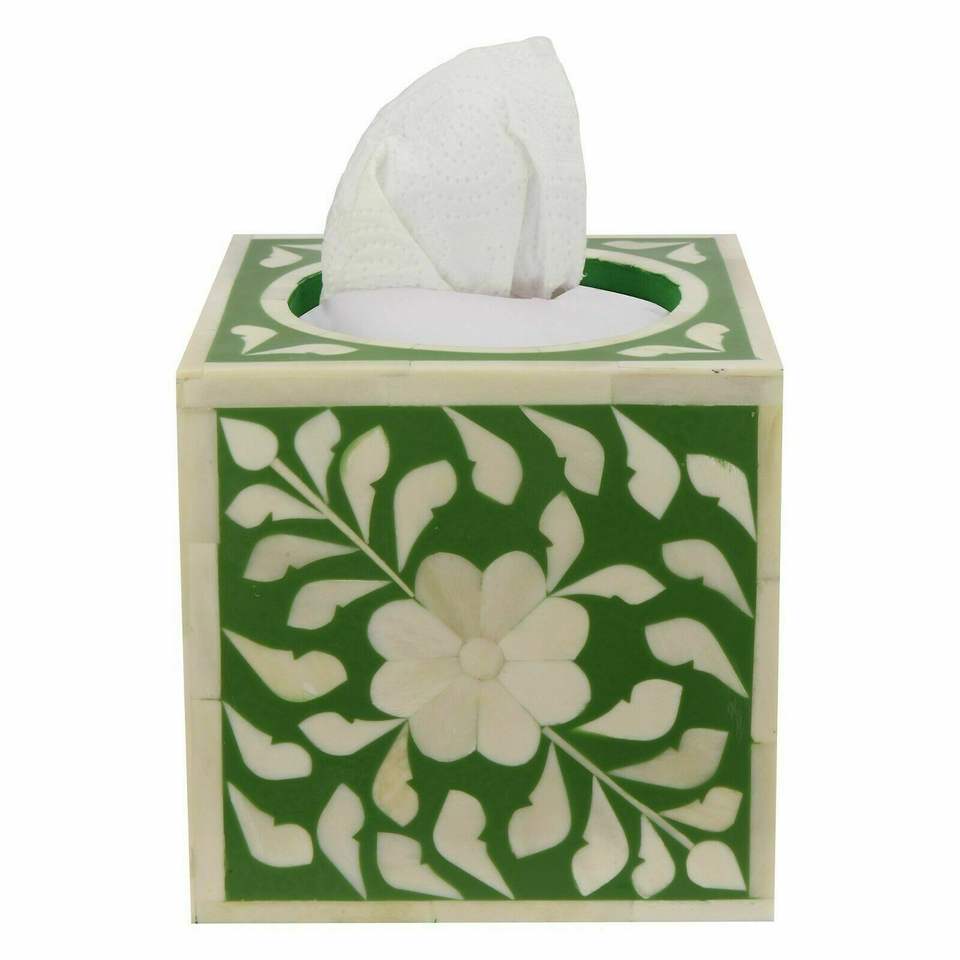 Resin Inlay Square Tissue Box in Leaf Design From Tradnary