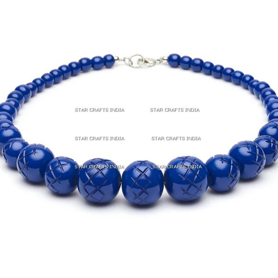 Resin Navy Blue Beads Good Quality Multi Shapes Birthday Necklace Daily Fashion Women Resin Beads Glass Beads Necklace