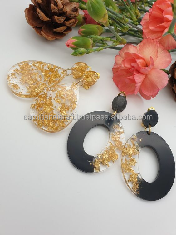 Resin Teardrop Earrings Resin Bead Earrings Resin Circle Earrings Red Color