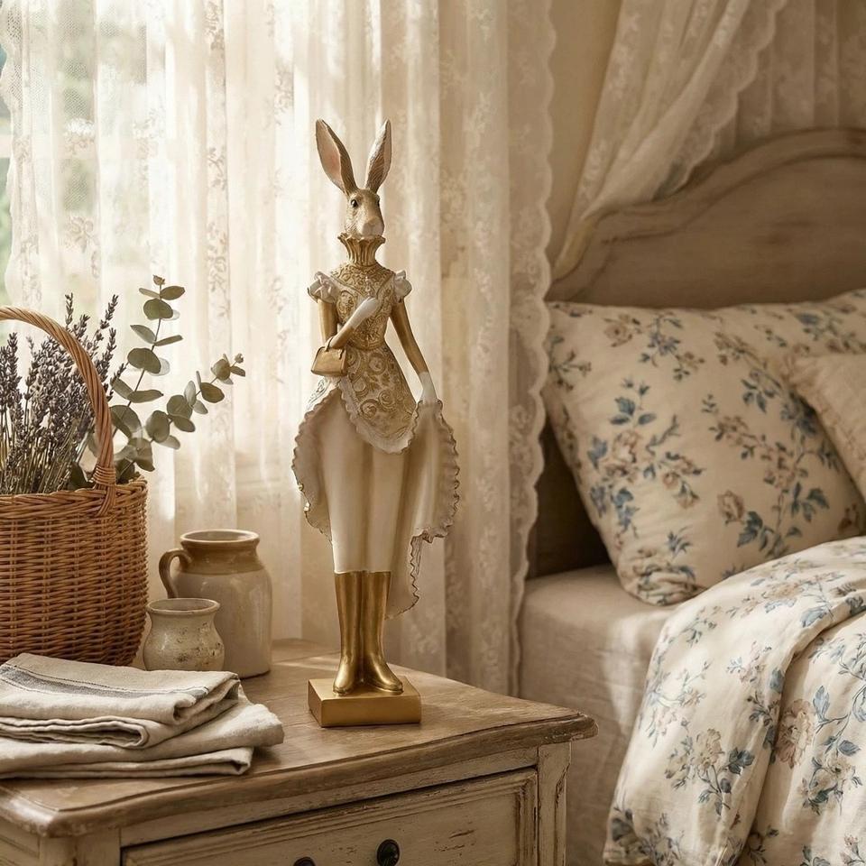 Resin Vintage Gold Rabbit Statue Male Female Easter Decor Indoor Home Desktop Ornament Spring Decoration