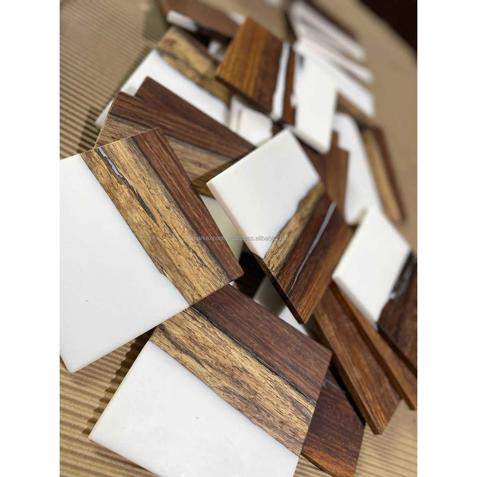 Resin Wooden Coasters Set Round and Square Drink Mat Cup Holder Tea Coaster Dining Room Stylish Living Room Modern Accessories