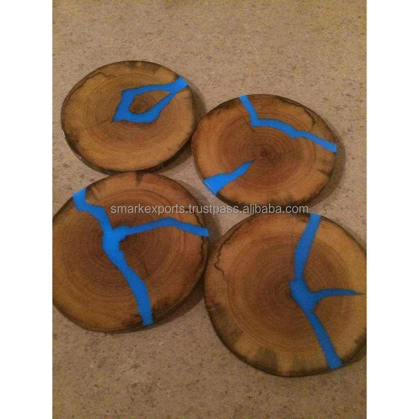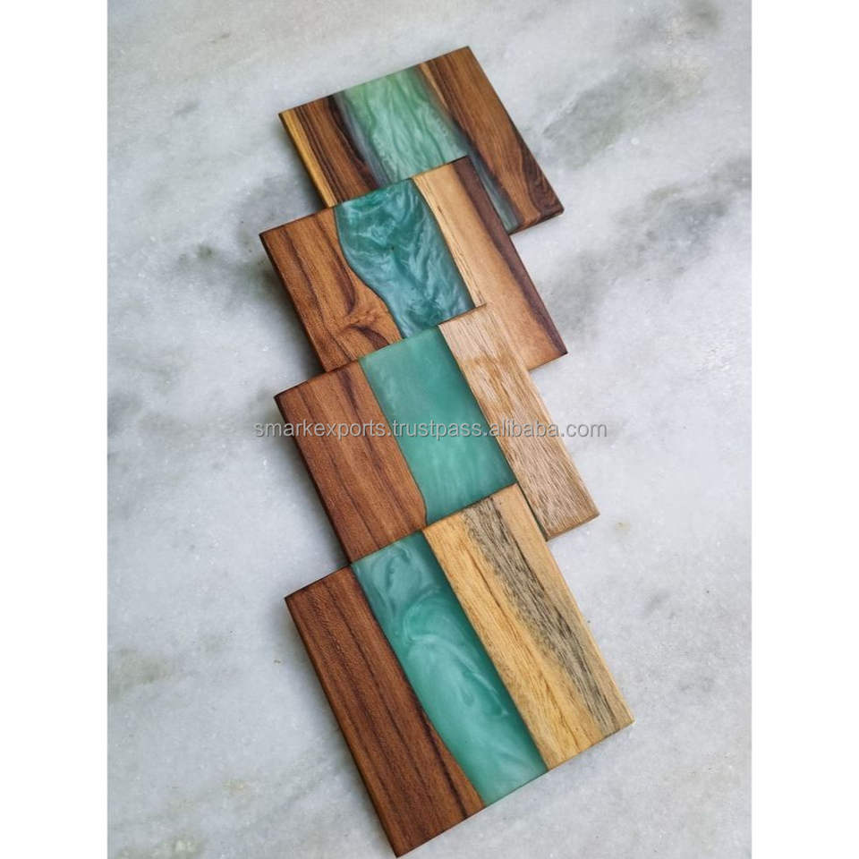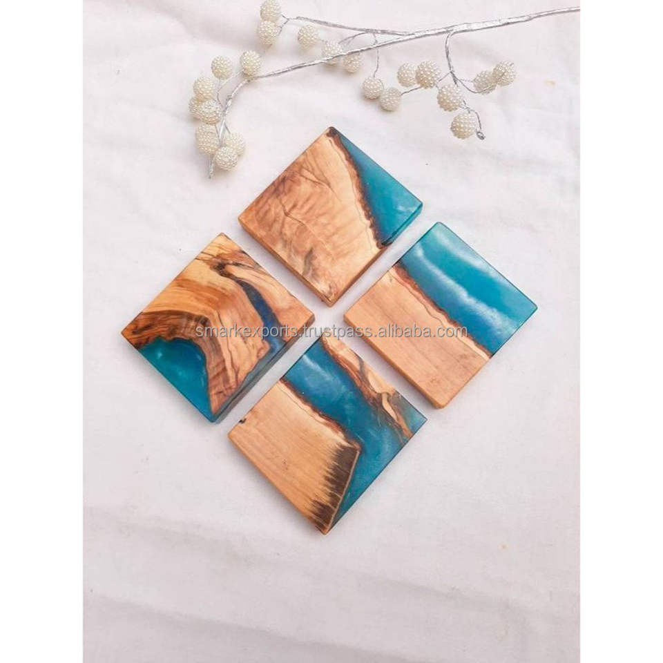 Resin and Wooden Coaster Set Round and Square Drink Mat Cup Holder Tea Coaster Dining Room Stylish Modern Tabletop Accessory