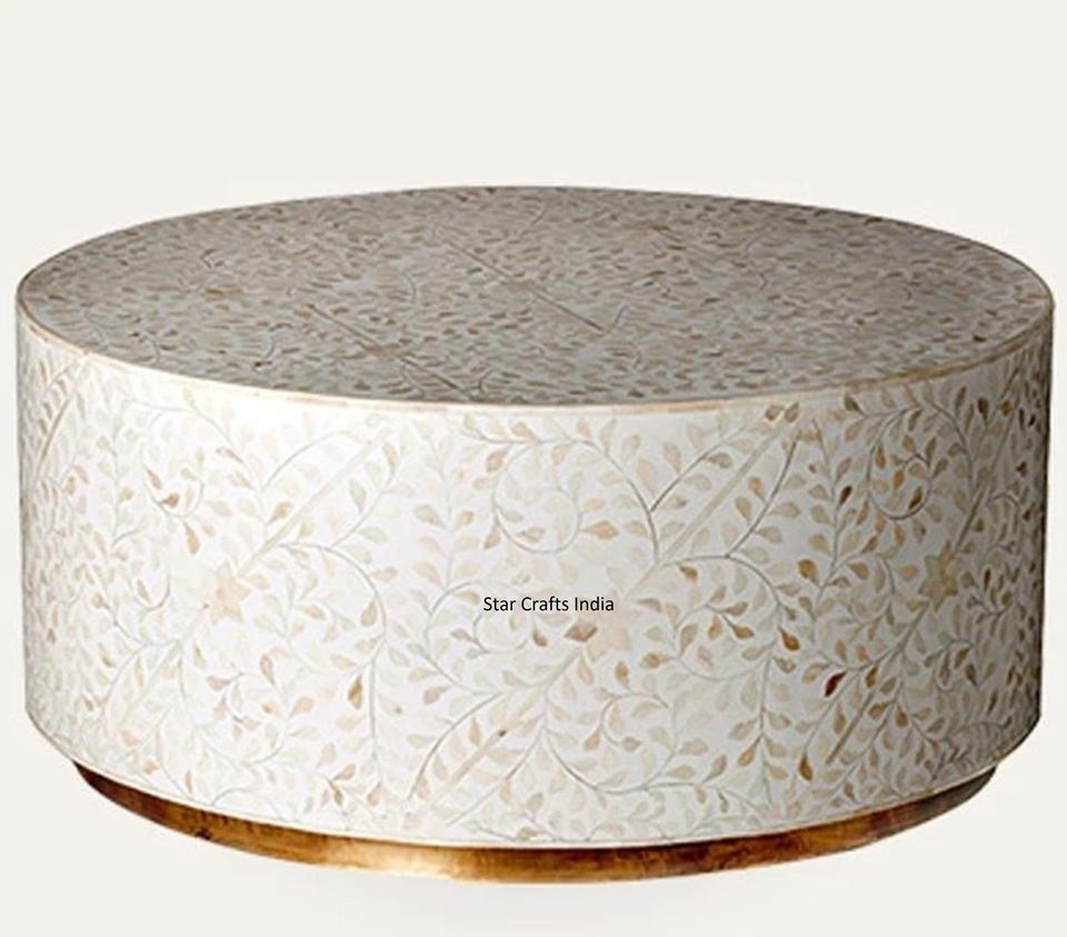Resin with Bone Inlay Over Wood with Metal Stand Round Breakfast Table Unique Design Home Furniture Coffee Table