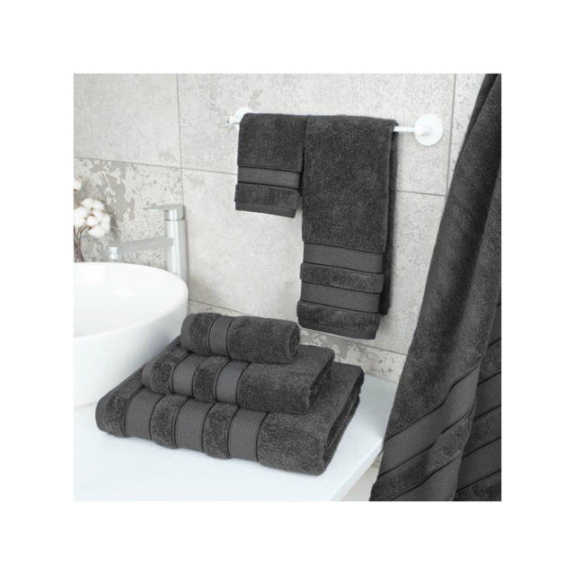 Resort Terry 27x54in 640GSM Cotton Bath Towel Featuring Grey Microfiber Embroidered Pattern & Plush Build For Premium Hotels