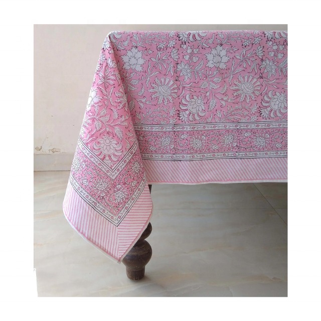 Restaurant Grade Pink Floral Cotton Table Cloth 70x120 Inches GOTS Certified Embroidered 210 GSM Wrinkle Free OEM Design India