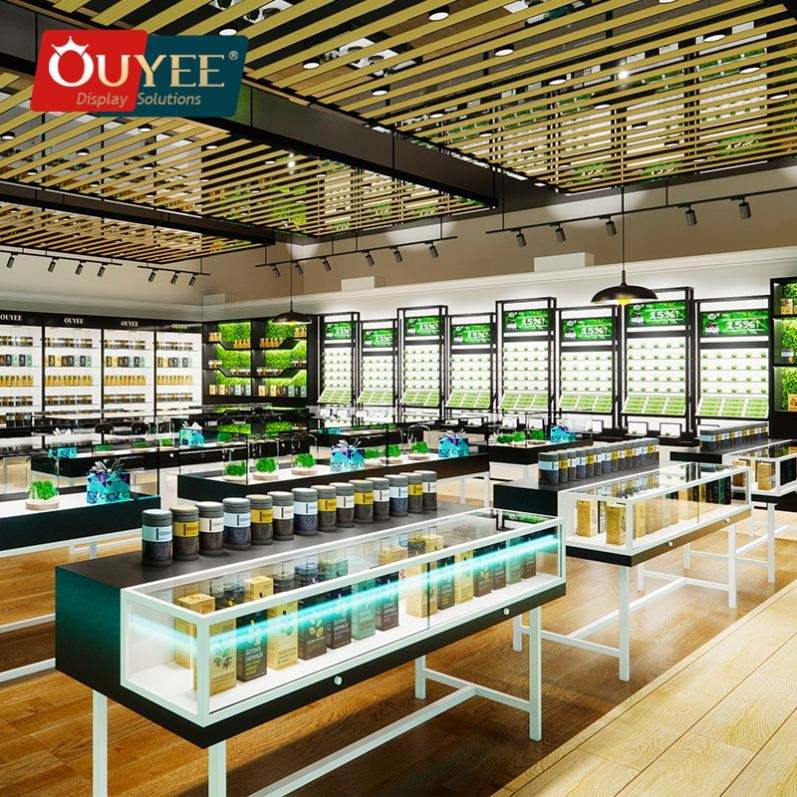 Retail Pharmacy Shop Tobacco Shelf Glass Cabinet Smoke Counter Display Smoke Shop Showcase for Head Shop