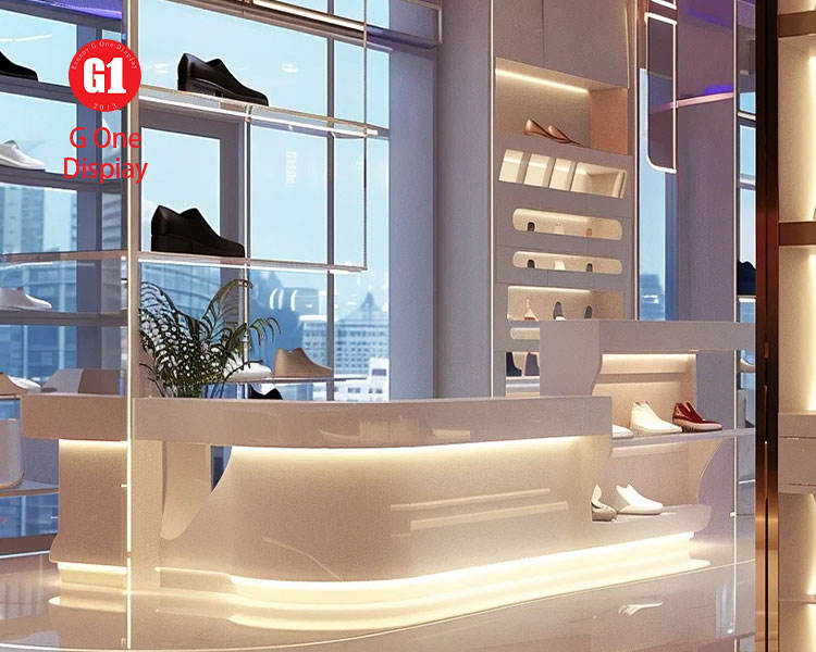 Retail Shoes Shop Interior Display Fixture Customized Design Luxury Shoe Store Fittings Interior Layout
