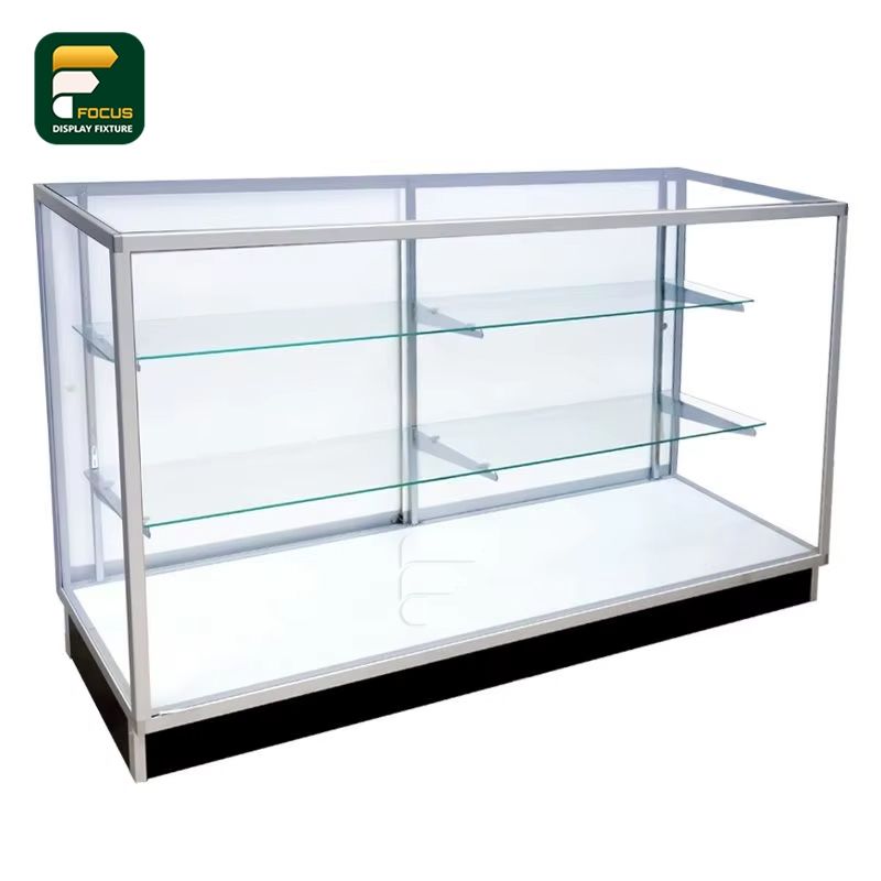 Retail Shop Display Showcase Full Vision Glass Cabinet Tempered Glass Display Showcase with Aluminum Frame and Lockable Storage