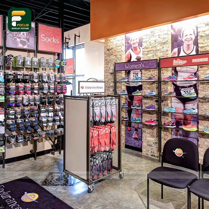 Retail Store Clothing Display Fixture Wall Sock Organizer Central Movable Rack Athletic Apparel Visual Merchandising Shelf