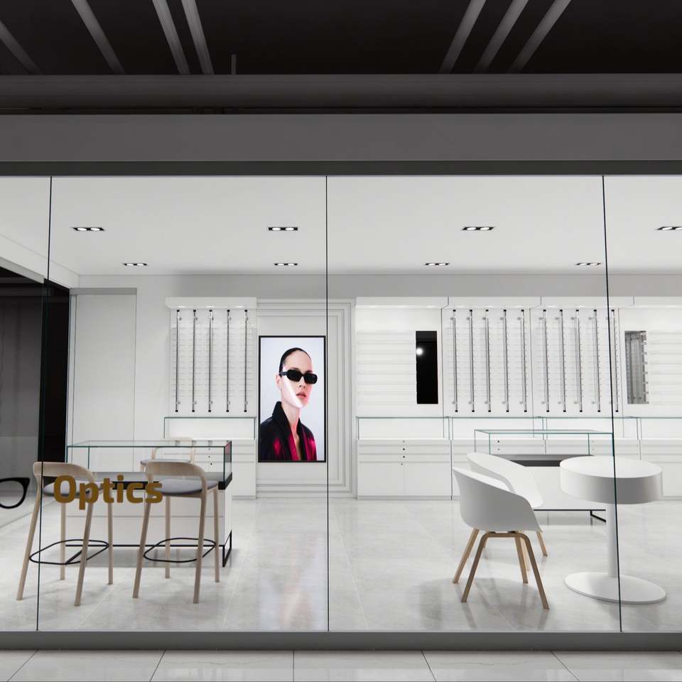 Retail Store Decorations Rack Wood Showcase Optical Shop Interior Design Wall Mounted Eyewear Display Shelf