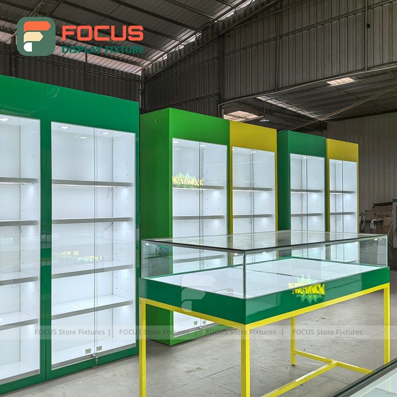 Retail Store Glass Showcase Display Cabinet Tempered Glass Shelving Custom Fixture Full Vision Display Furniture