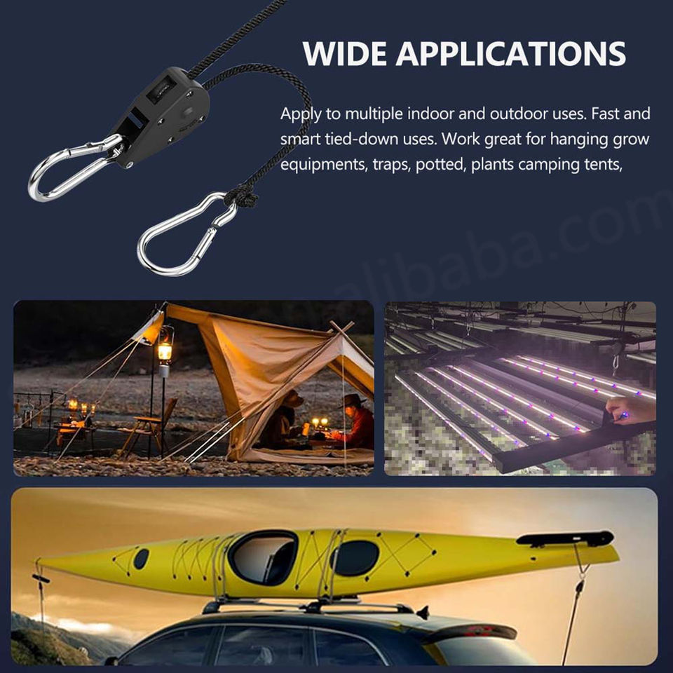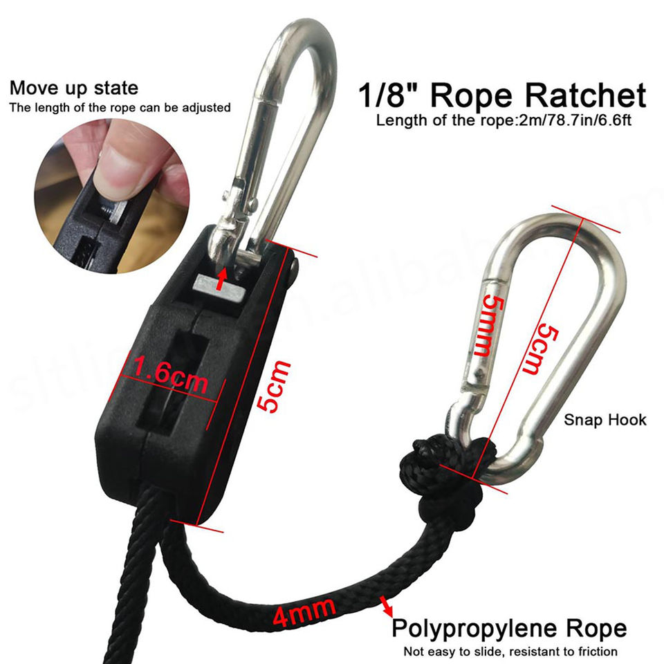 Retractable Heavy Duty Ratchet Tie Down Straps 1/8" Adjustable Rope Hanger with Carabiner Hook for Hanging Plants Grow Light