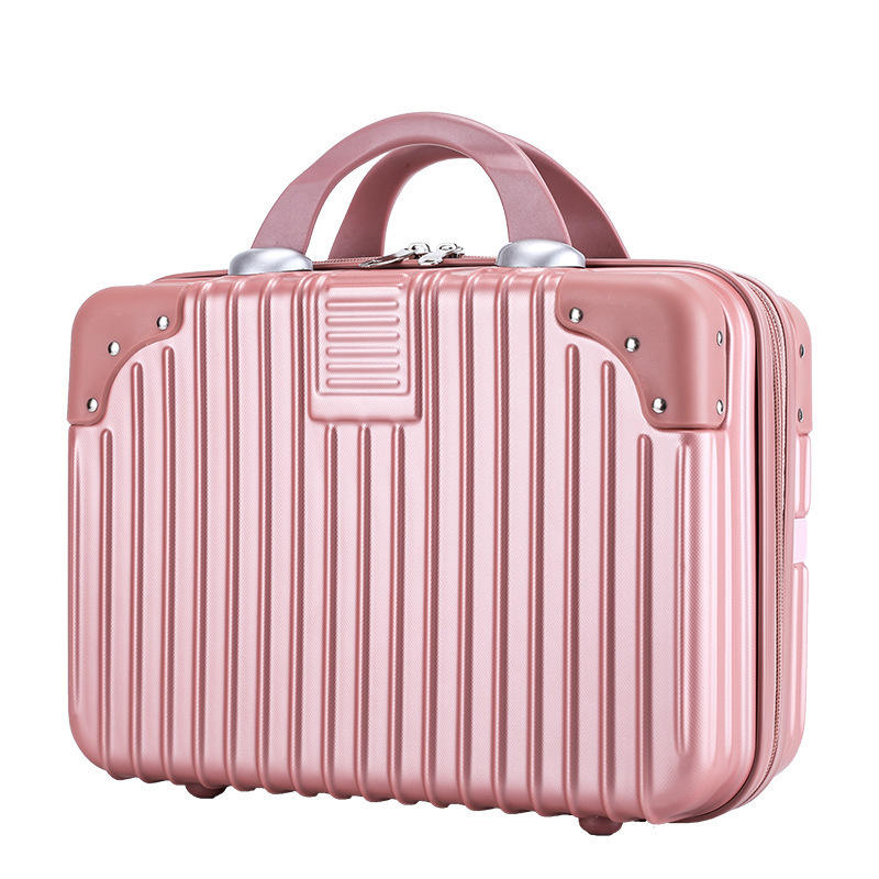 Retro 14 Inch Makeup Case Portable Cosmetic Bag With Zipper And Soft Handle For Everyday Use White Pink Color Combination