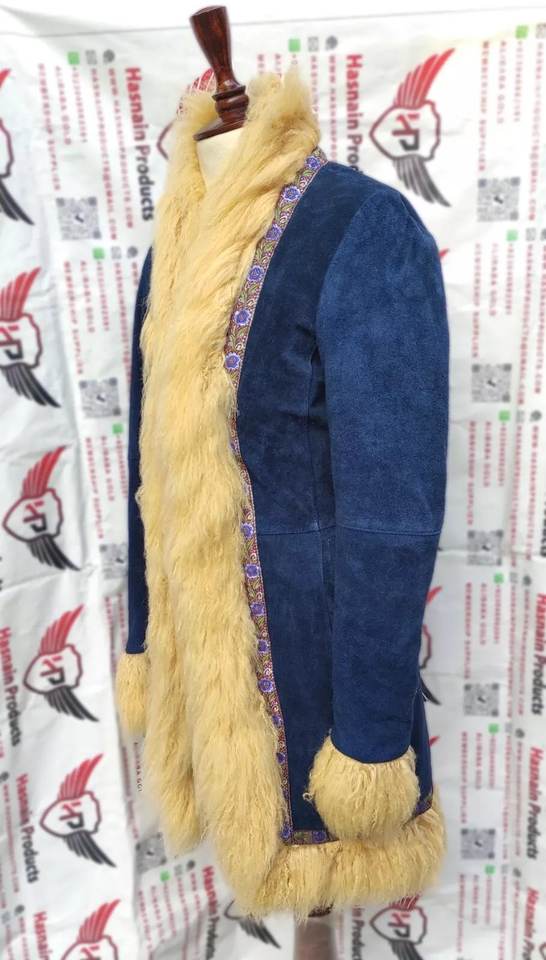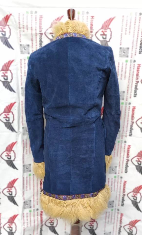 Retro Afghan Penny lane Genuine Suede Coat Women's Trim with Faux Fur Outerwear Genuine Leather Suede Penny lane Long Coat for