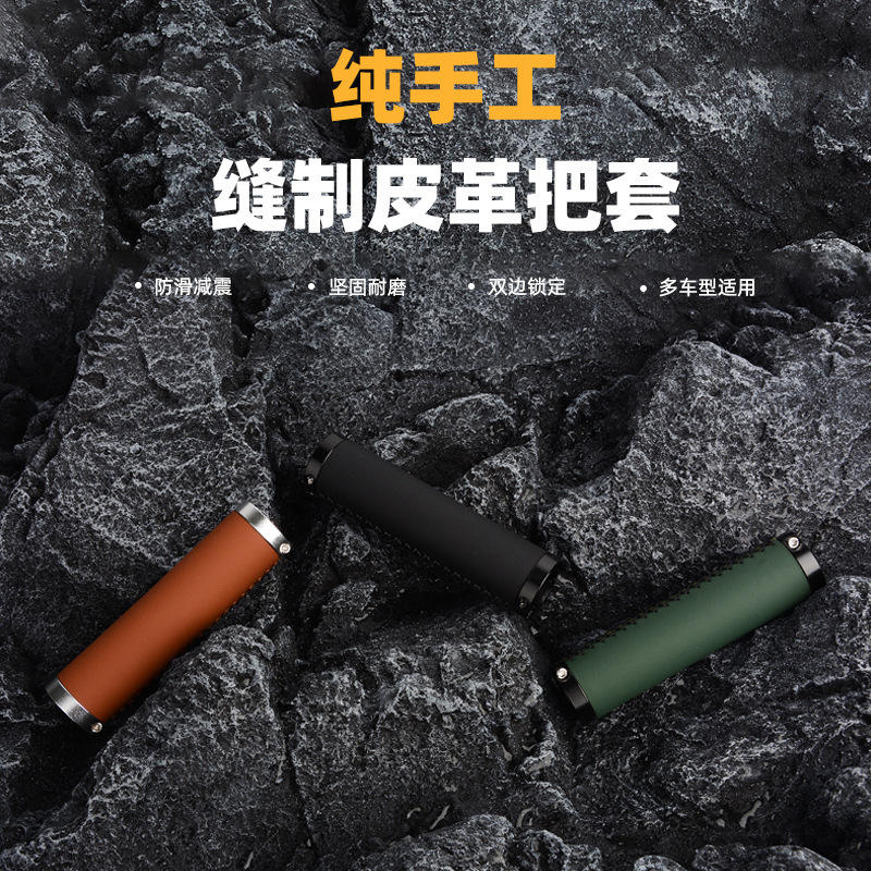 Retro Aluminum Alloy PU Leather Bike Handlebar Grips 25.4 Mm For Mountain Bikes With Hand Stitching And Locking Ends