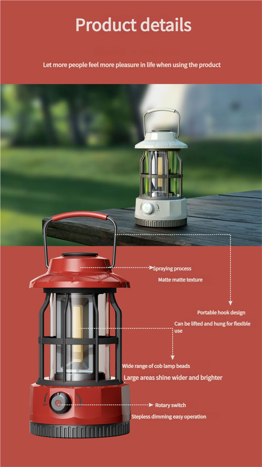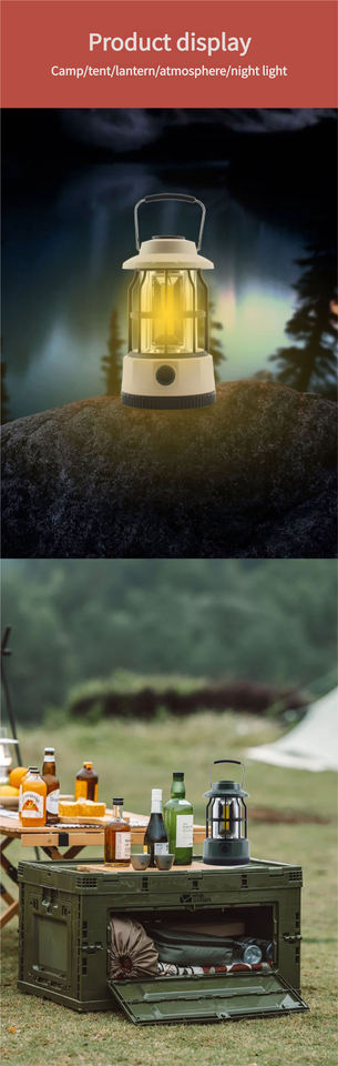 Retro COB LED Light Lantern Lamp Camping Rechargeable Wireless Portable Garden Yard Lights