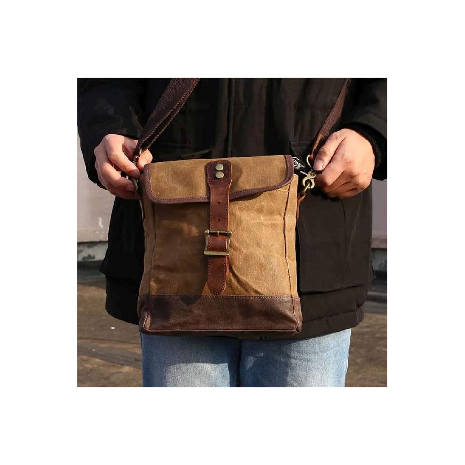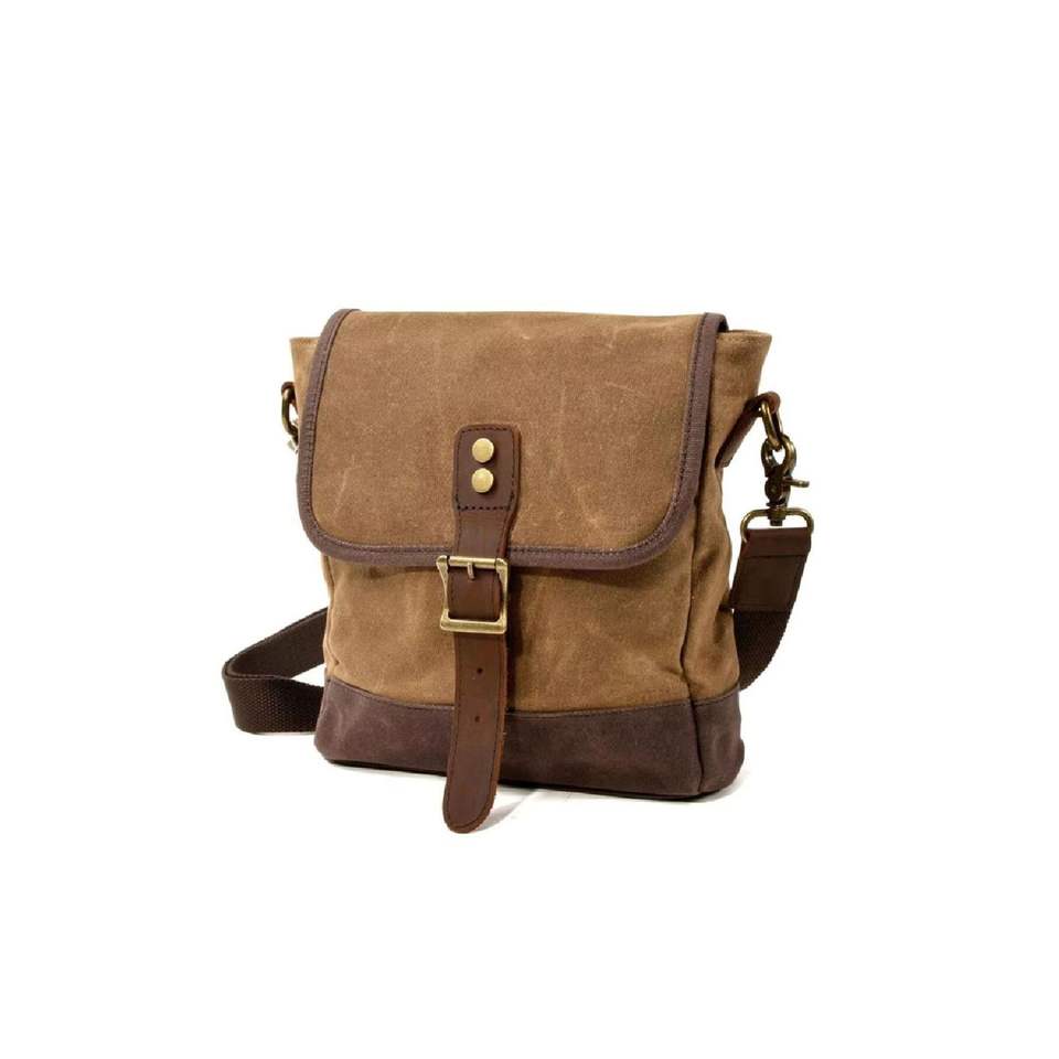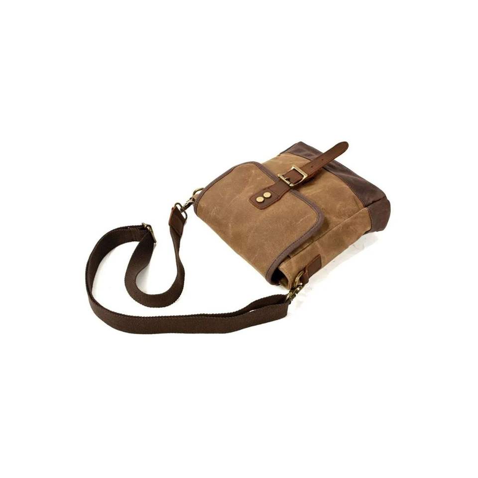 Retro Canvas Casual Small Messenger Bag Waxed Waterproof (Khaki)