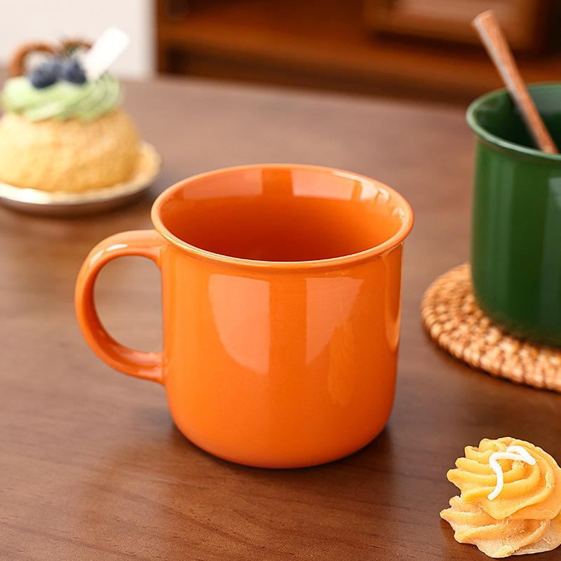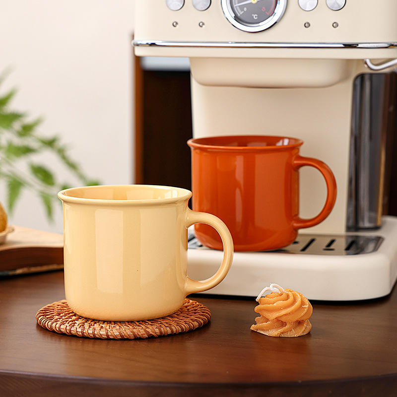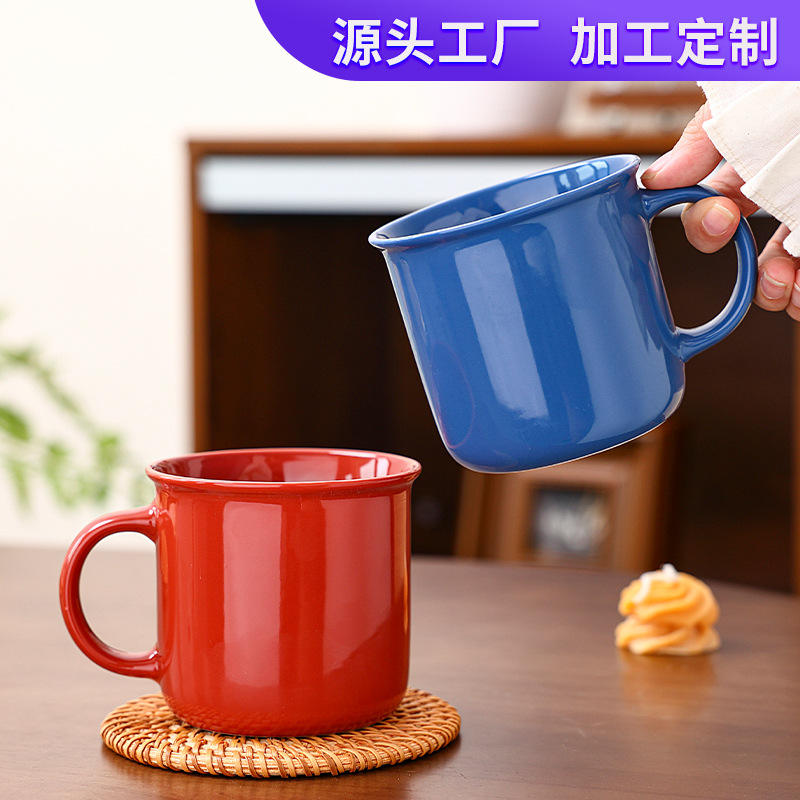 Retro Ceramic Mug Solid Color Reusable Coffee Cup For Business Gifts