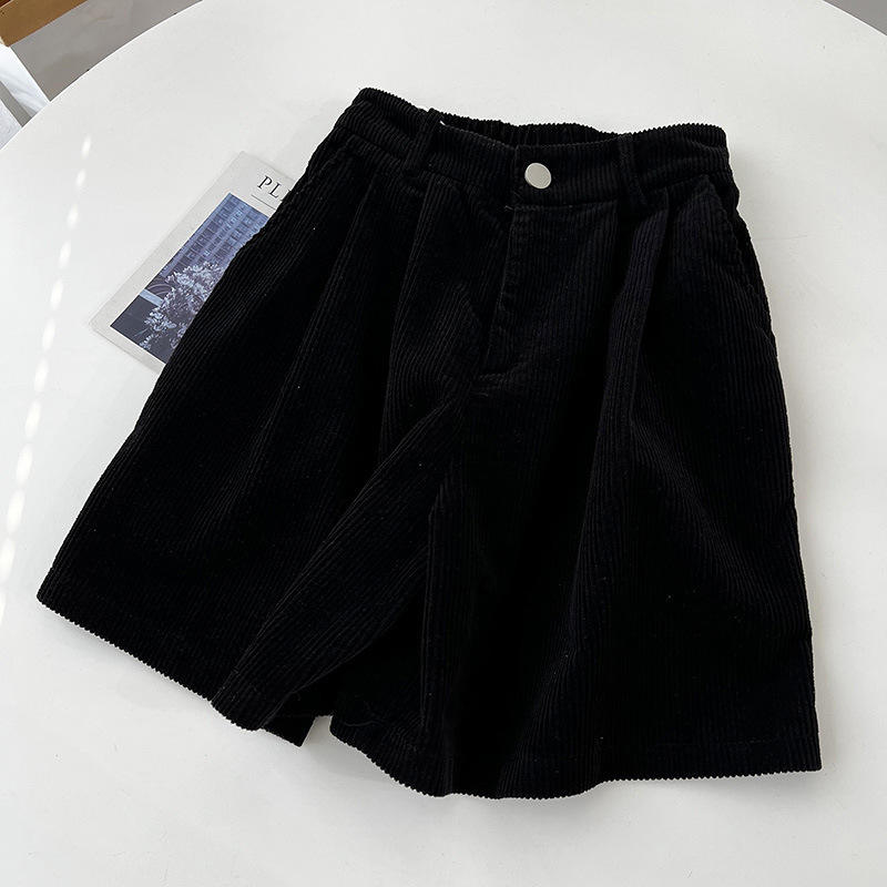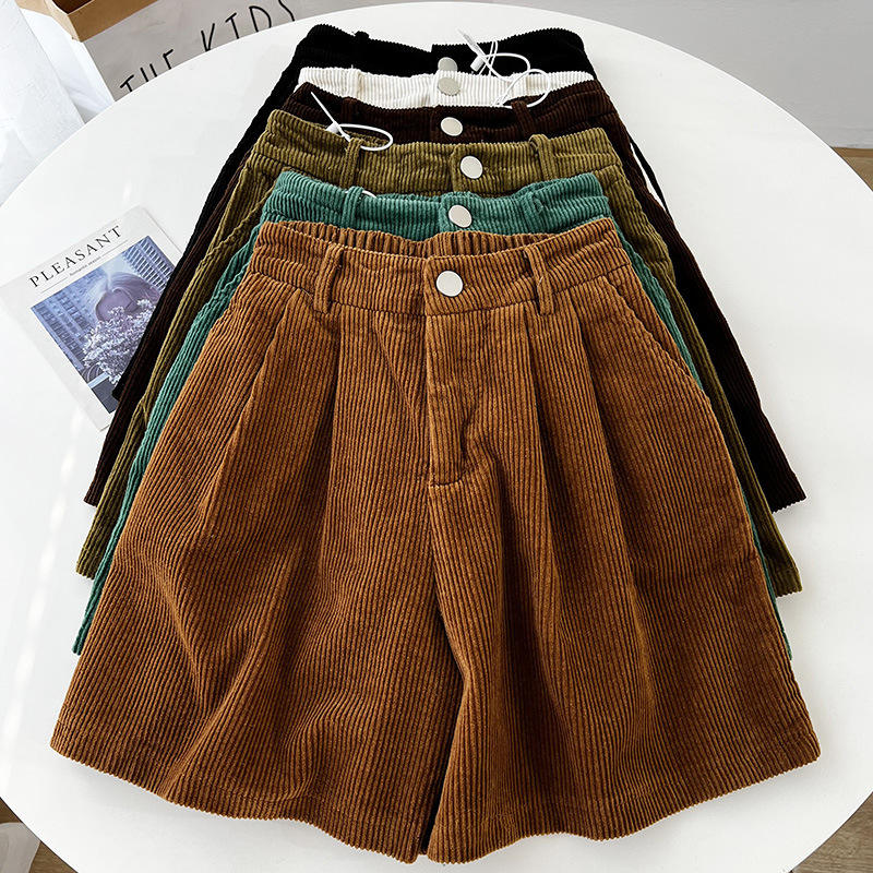 Retro Corduroy Breathable Hot Elastic Waist Shorts for Women's Autumn Winter New High Waist Slimming Versatile Casual Wide Leg