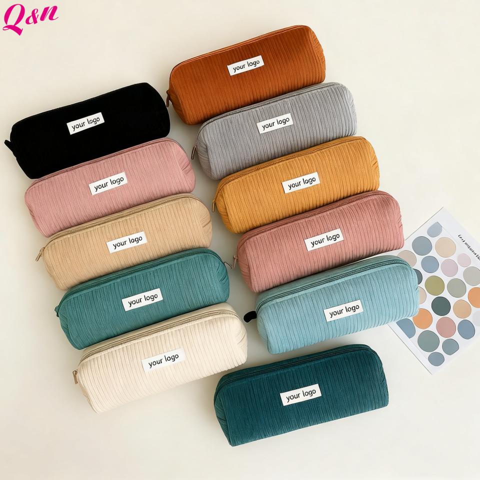 Retro Corduroy Pencil Case Travel Cosmetic Organizer Pouch Pencilcase Bags Women's Makeup Handbags Storage Bag Stationery Bag