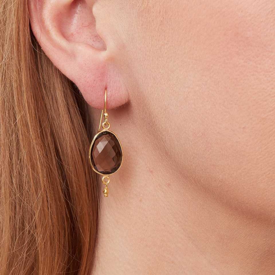 Retro Design Daily Wear Jewelry Gold Plated Bulk Selling Solid 925 Sterling Silver Natural Smokey Quartz Gemstone Drop Earrings