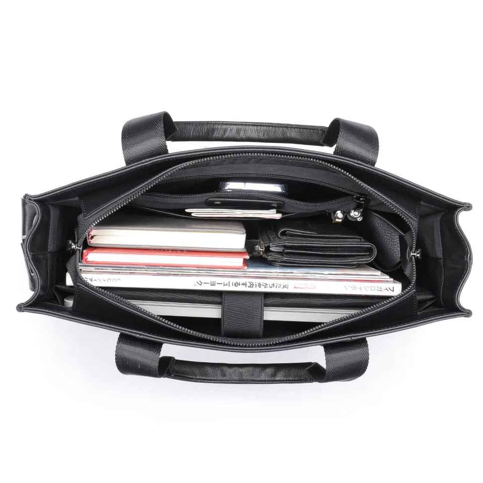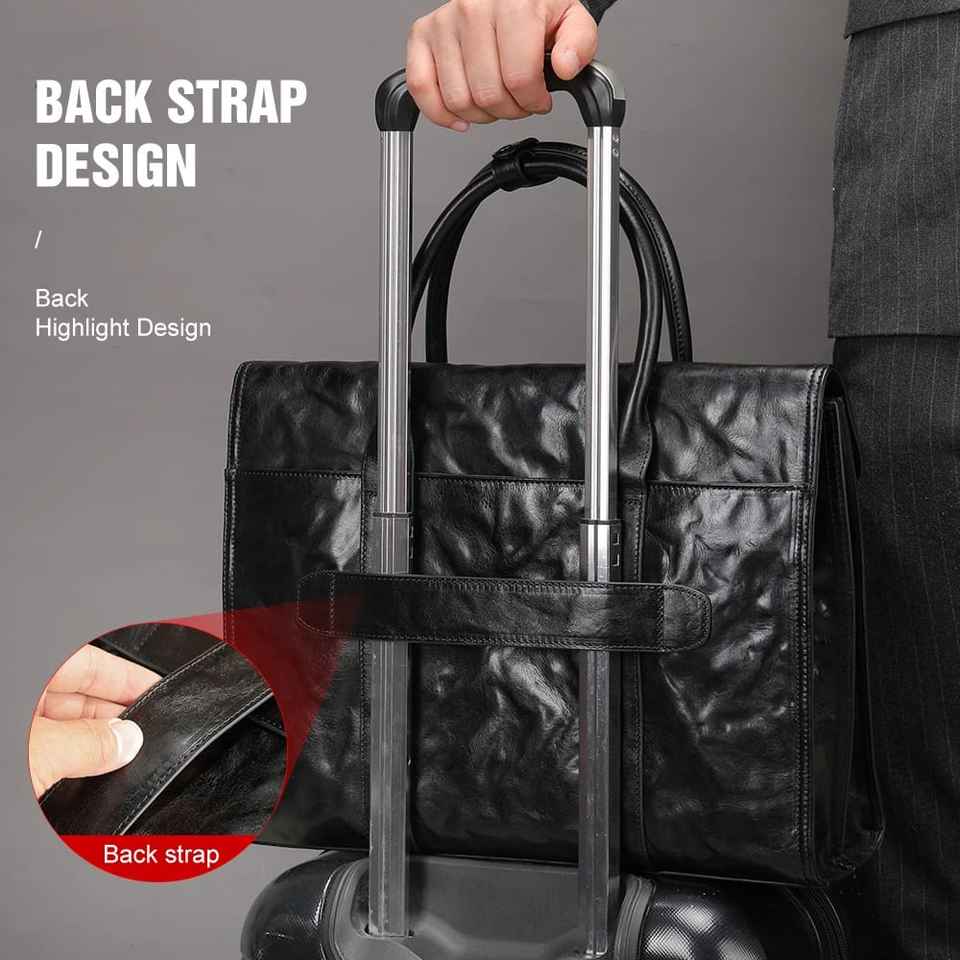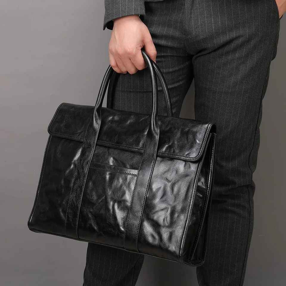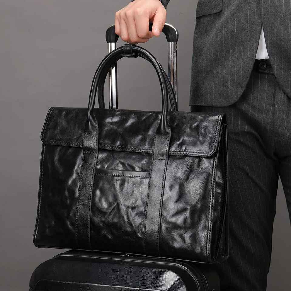 Retro Design Genuine Leather Briefcase Lightweight Portable Handbag for Men Women Zipper Closure Laptop Bag for Business Travel