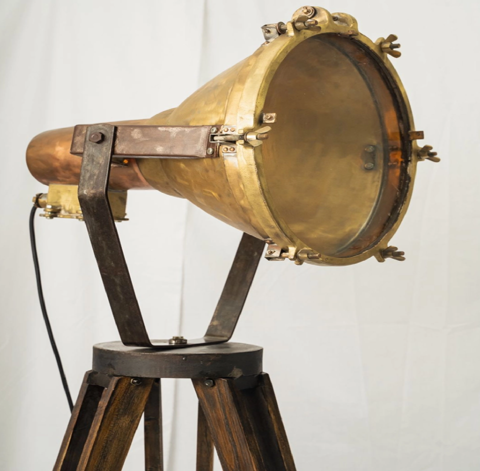 Retro Design Nautical Antique Brass Spotlight Searchlight Wooden Tripod For Studio Decor Accessories at Wholesale Direct price