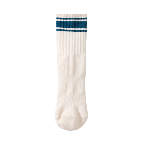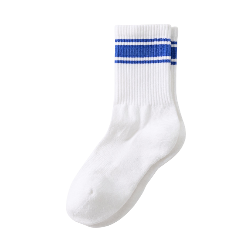 Retro Double Stripe Crew Socks Ribbed Cuff Cushion Towel Sole Classic Athletic Cotton Sports Socks for Men & Women