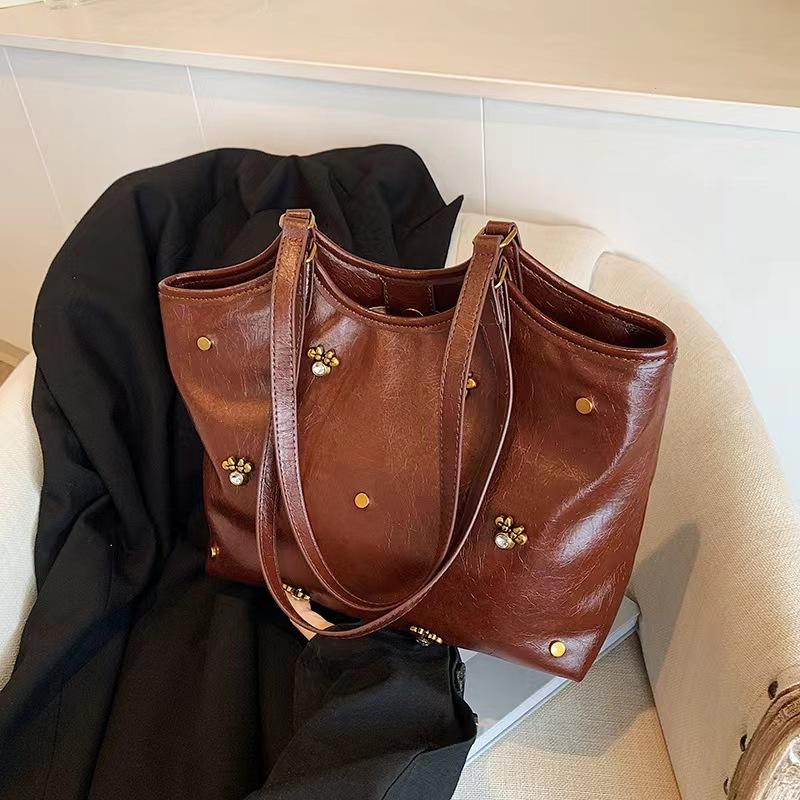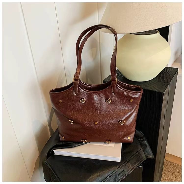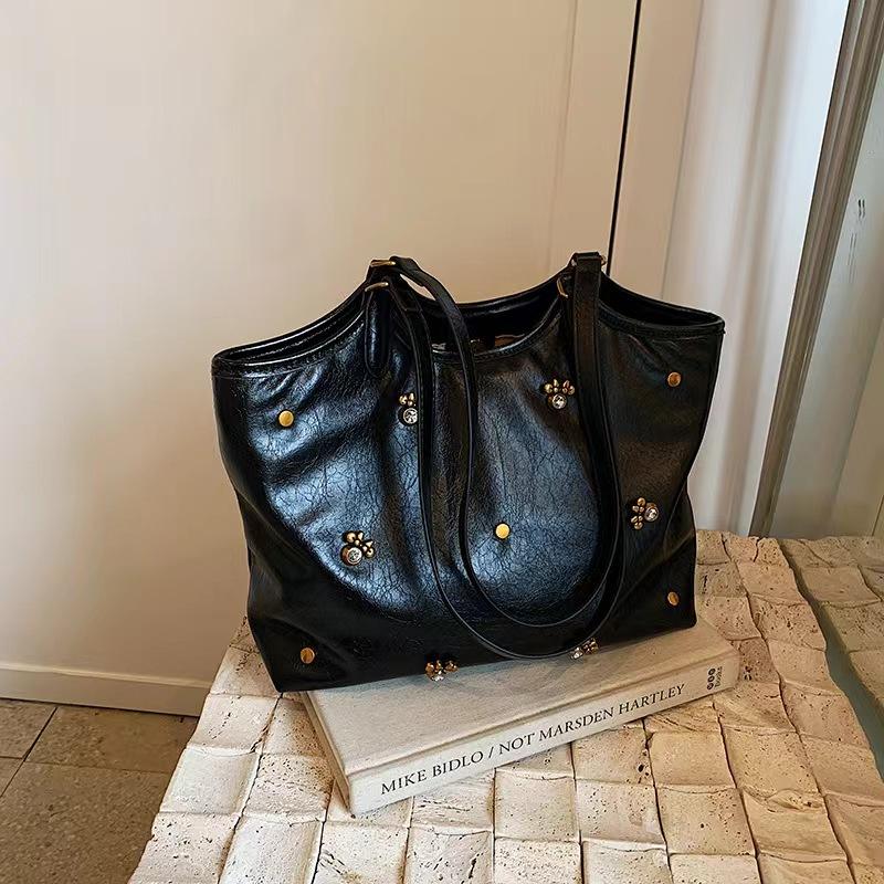 Retro Fashion Large Capacity Totes Women Lady Rhinestone Rivet Shoulder Bags With Wholesale Price and High Quality