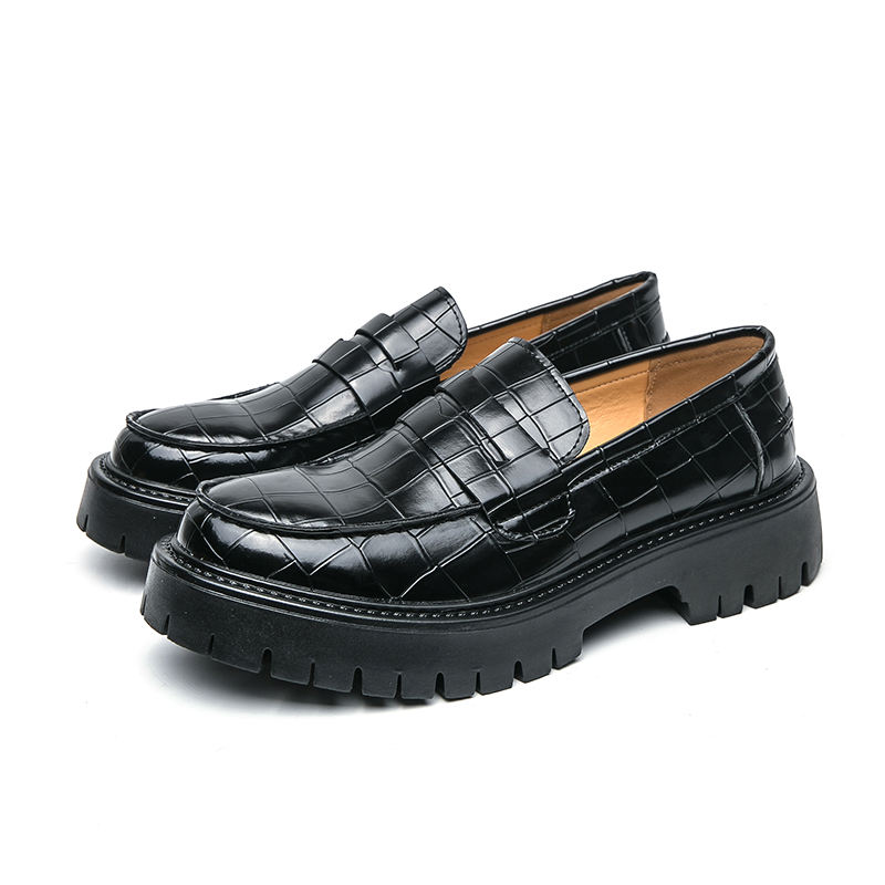 Retro Fashion Trend Slip-on Shoes PU Upper Thick-soled Heightened Rubber Outsole All Seasons Outdoor Casual Shoes