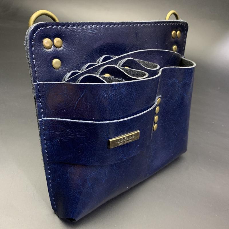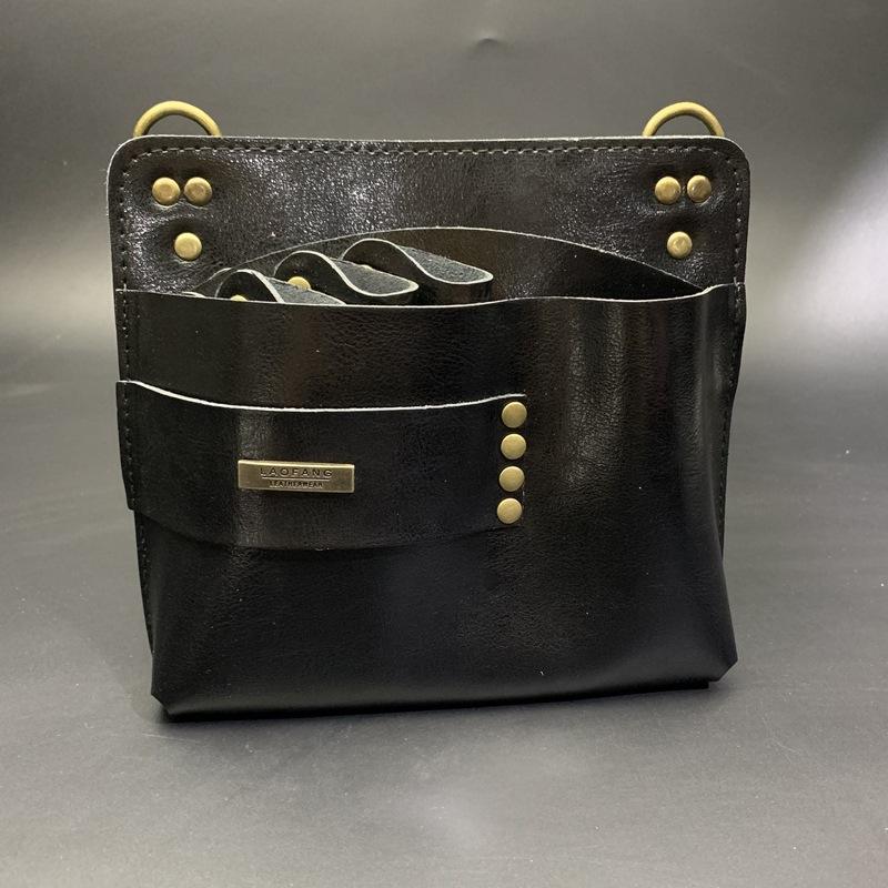 Retro Fashionable Cowhide Hairdressing Tool Bag Zipper Waist Bag Hairstylist Barber Crossbody Design