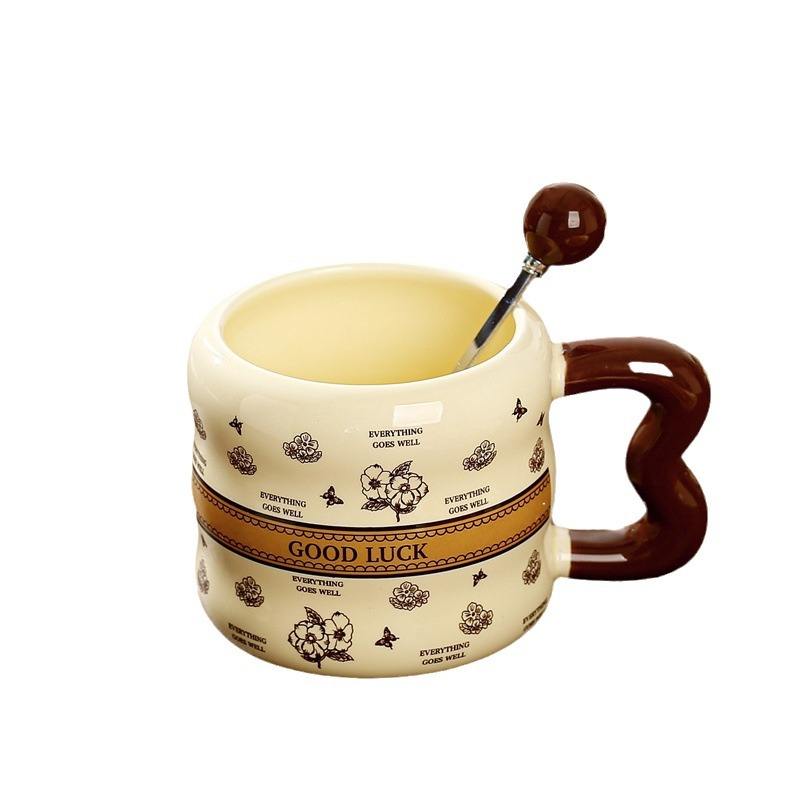 Retro Floral Ceramic Mug With Lid 350Ml For Coffee Tea Home Office Use