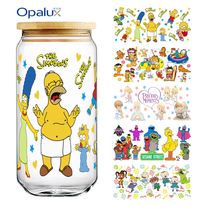 Retro Funny Cartoon Series 16oz UV DTF Tumbler Transfer Sticker Factory Direct Wholesale Price PET Material Clear Print Easy