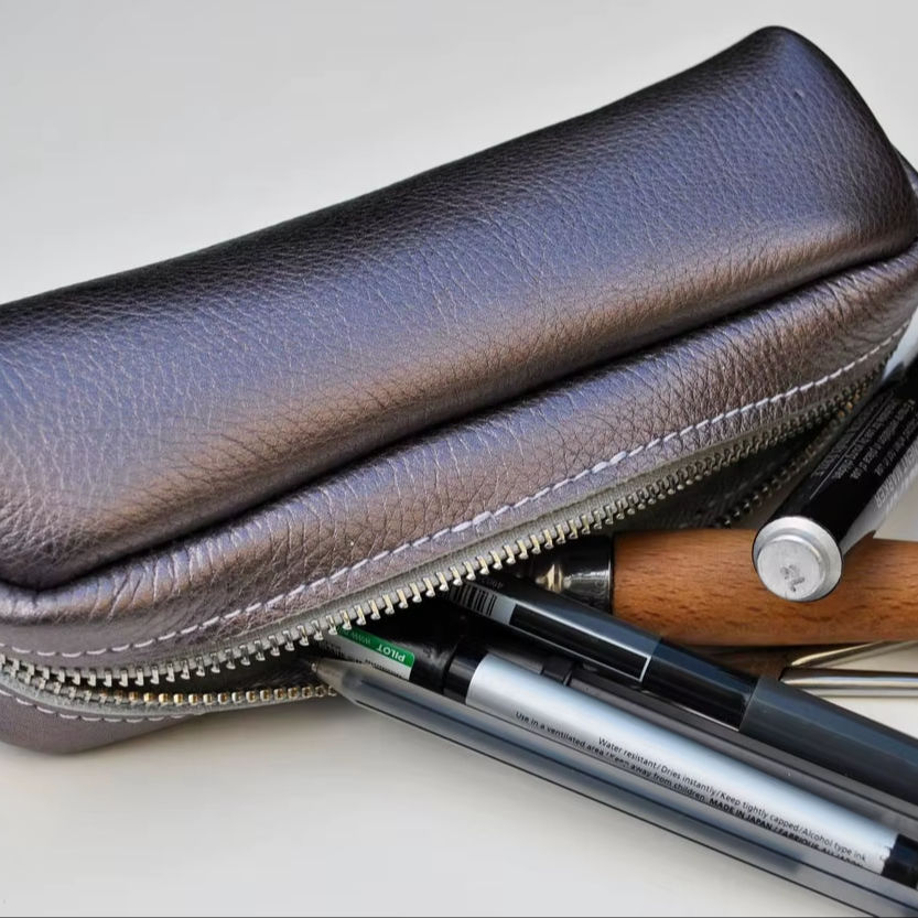 Retro Genuine Leather Handmade Custom Pencil Case Pouch Business Office School Student Creative Pen Pencil Leather Case Pouch