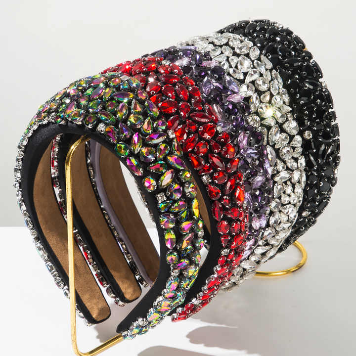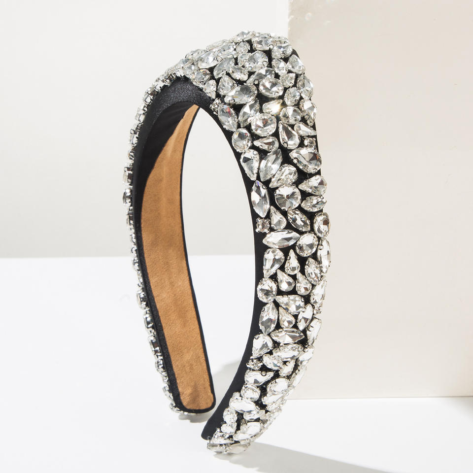 Retro Heavy Industry Baroque Headband With Glass Diamond Crown High Skull Top Luxurious Temperament Headband Hair Accessory