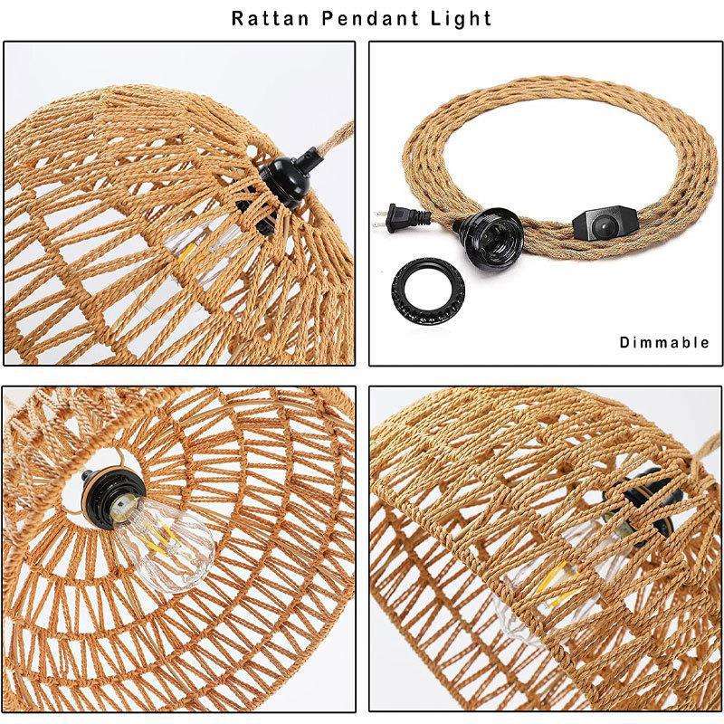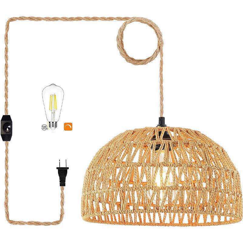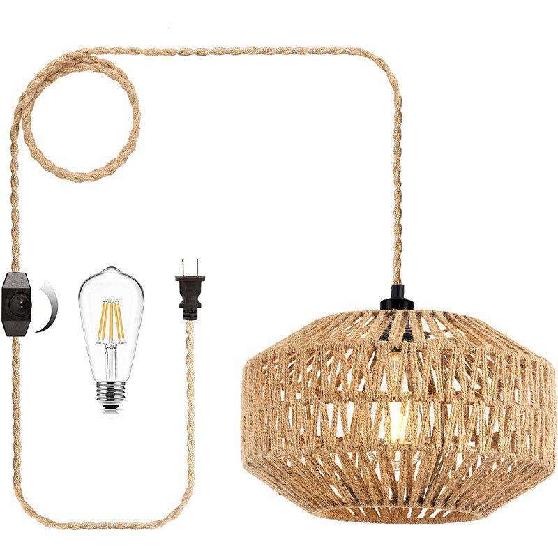 Retro Hemp Rope Chandelier Oval Shape Single Head LED Light For Home Coffee Shop Bar Restaurant Ceiling Lamp